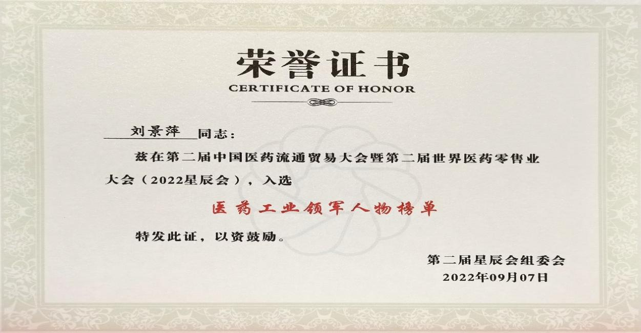 在本次开幕式上,发布了“医药工业领军人物”、“医药零售领军人物”榜单,六合联盟官网药业集团刘景萍董事长凭借在儿药领域多年的努力探索和对行业的杰出贡献,荣获“医药工业领军人物”称号。